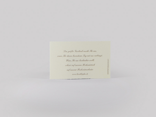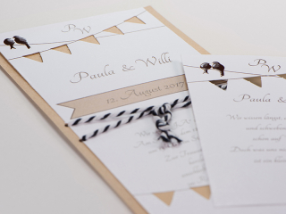 Diese umfasst von Einladungs- über „save the date“- bis hin zu Tischkarten alles für den festlichen Anlass.